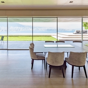 Les divers systèmes Vitrocsa laissent une grande liberté architecturale. Avec le système à galandage, la paroi s’efface entièrement dans les cloisons. Ici, l’ouverture est maximale, sans gêne visuelle. Associée à un seuil invisible, où le châssis est dissimulé sous le sol, la fenêtre à galandage élimine toute barrière physique ou visuelle.