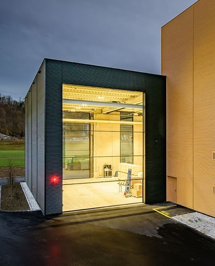 Des portes de livraison réalisée avec le système Guillotine atteignant 6 mètres de large et 9 mètres de haut, une première pour un bâtiment Suisse.