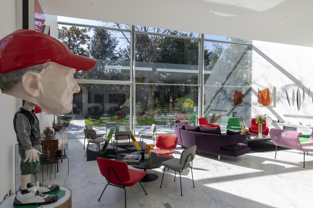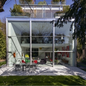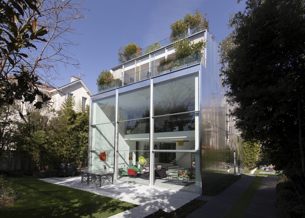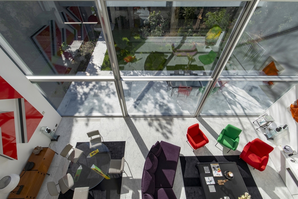 Façade complètement réalisée en TH+ Vitrocsa guillotine, composée de trois éléments d’une dimension de 3,4 m de large sur 7 m de haut.