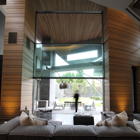 La fenêtre guillotine motorisée est composée de 3 éléments montant à 7,3 m de haut.